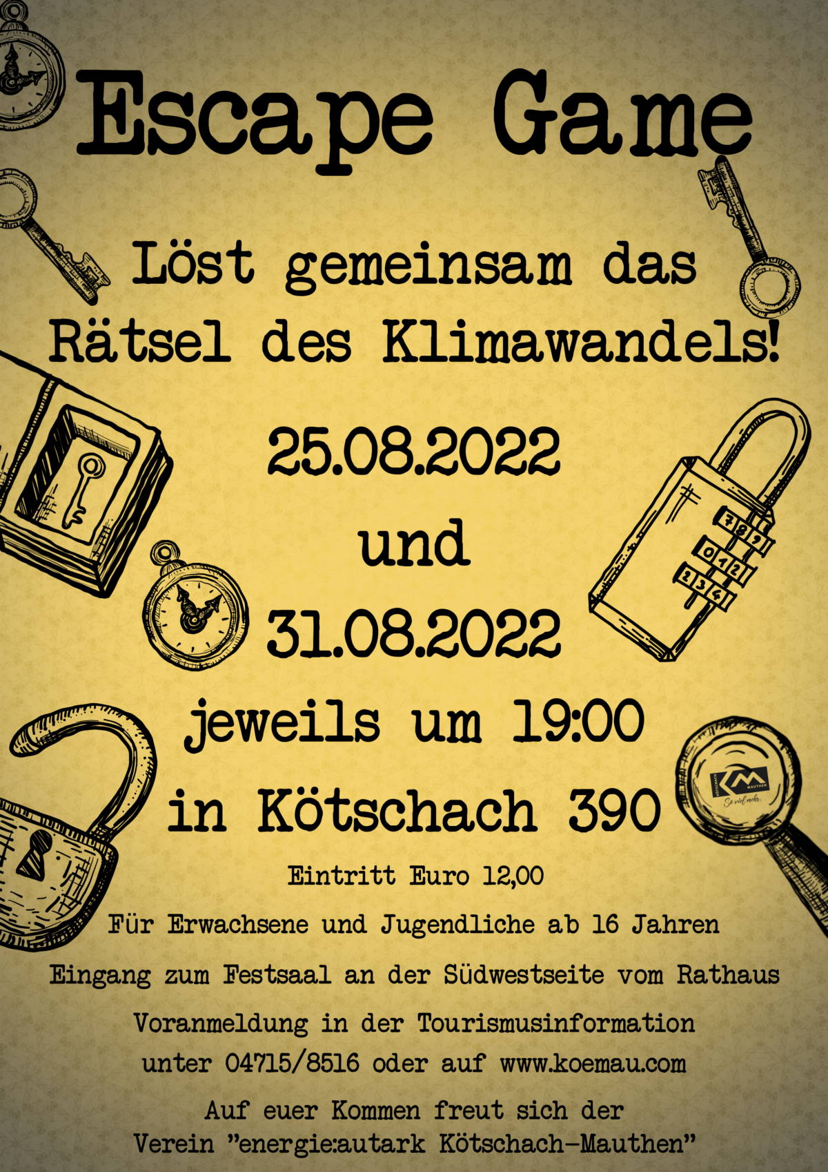 Wann: 28. und 31. August 2022 um 19:00 h. Wo: Rathaus Kötschach-Mauthen.  Für Jugendliche ab 16 Jahren und Erwachsene.