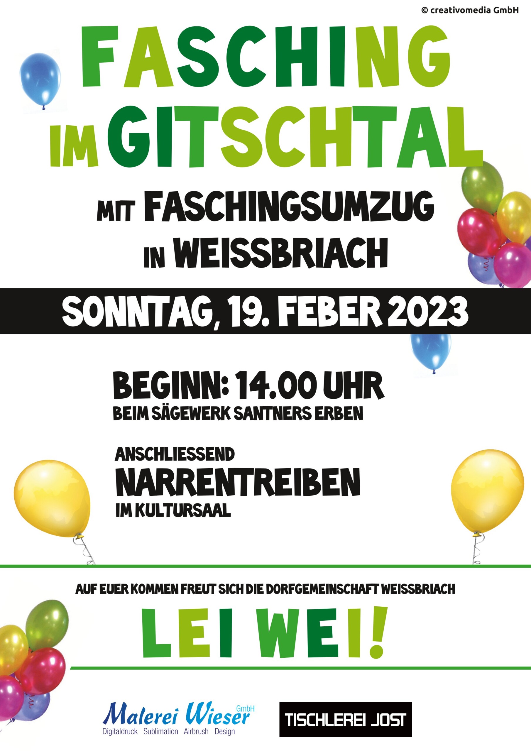 Am Sonntag, den 19. Februar, findet der alljährliche Faschingsumzug in Weissbriach statt.