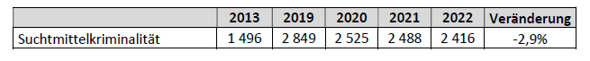 Das strategische Ziel der Polizei Kärnten war in diesem Bereich, wie schon in den Jahren zuvor, auch für 2022 die Suchtmittelkriminalität weiterhin verstärkt und konsequent zu bekämpfen.