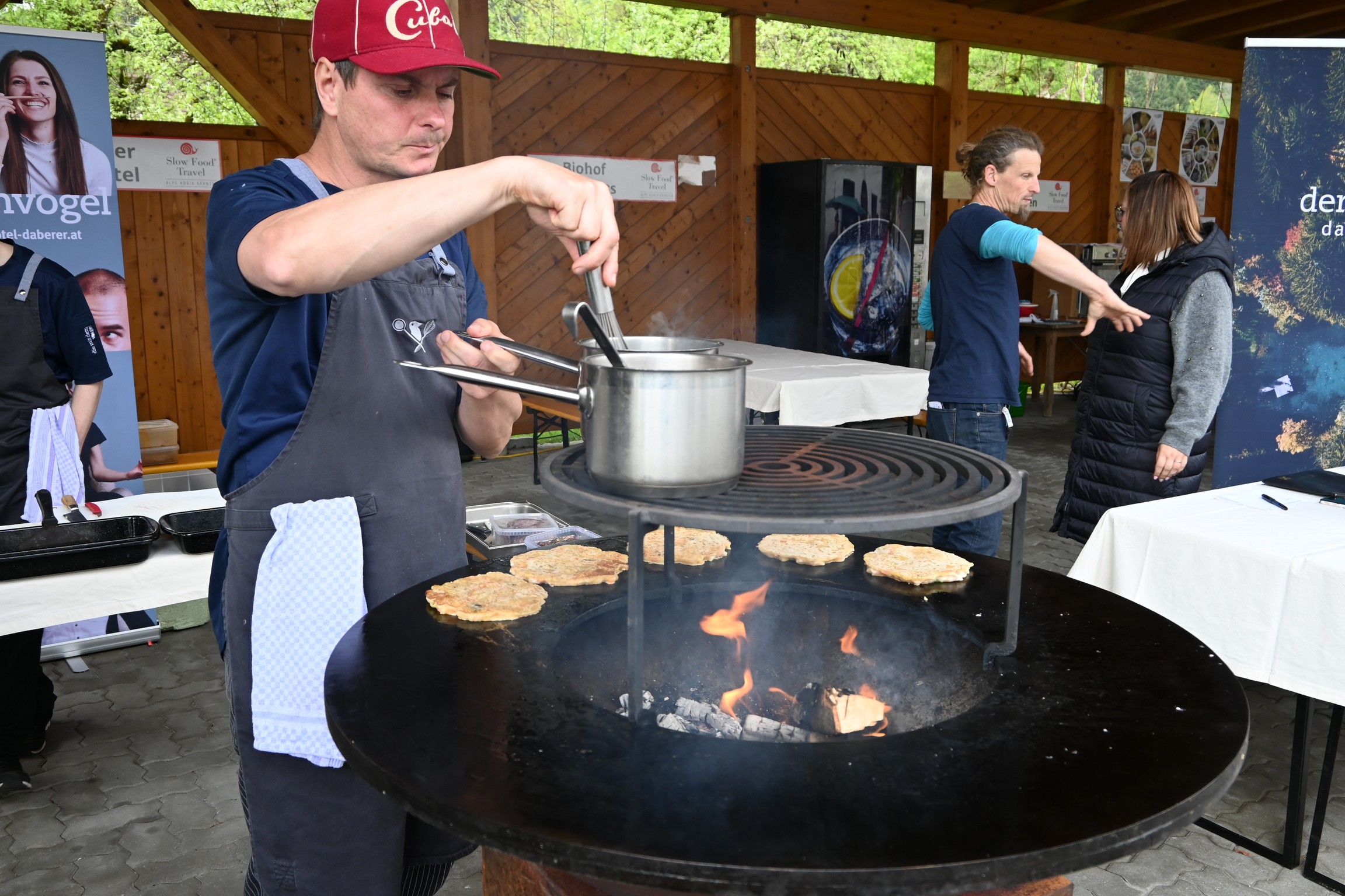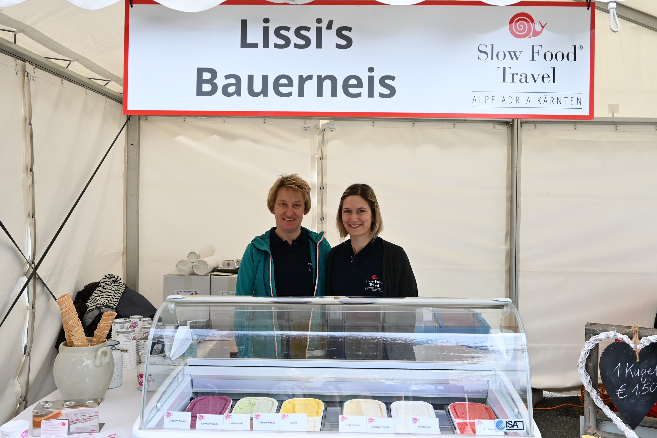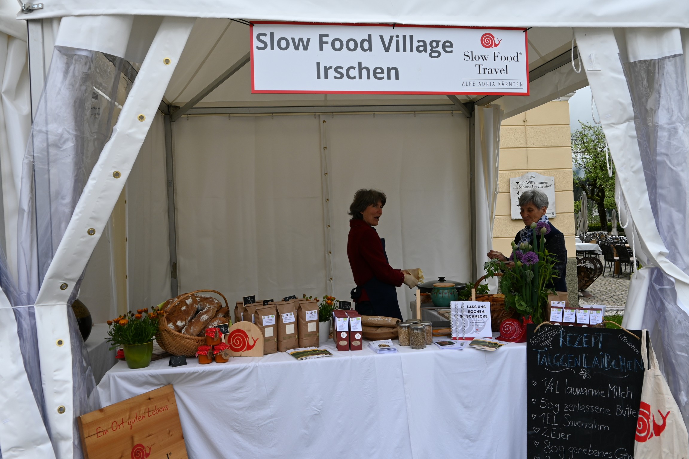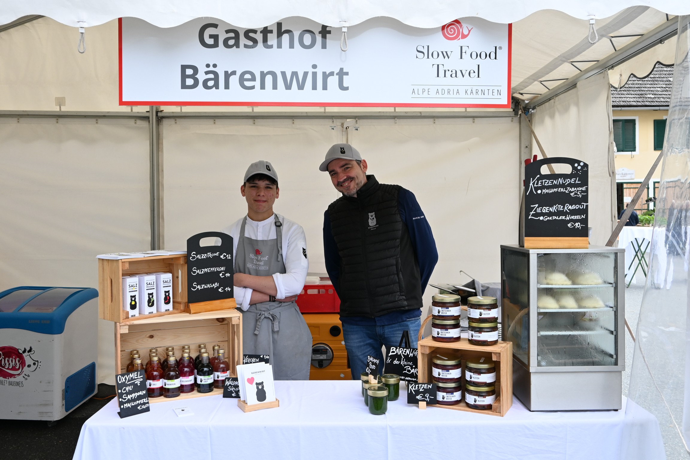 Gleichzeitig bot die Veranstaltung auch eine Bühne, auf der sich Slow Food Produzent:innen austauschten, die sich dies- und jenseits der Karnischen Alpen der Herstellung und Verarbeitung von guten und sauberen Lebensmitteln zu fairen Preisen verschrieben haben. Von frischen Kräutern, Gemüse, Brot, Honig über hausgemachten Speck und Käse bis hin zu exquisiten Schafspezialitäten – vielfach wurde diese Gelegenheit genützt, um die Einkaufstaschen mit köstlichen Slow Food-Produkten zu füllen.