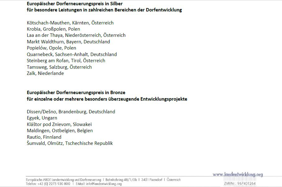 Von 11. bis 13. Mai 2023 fanden die Feierlichkeiten zur Preisverleihung des europäischen Dorferneuerungspreises im Hofheimer Land in Bayern statt. 21 Teilnehmer aus 13 europäischen Staaten nahmen teil und für das Bundesland Kärnten stellte sich die Marktgemeinde Kötschach-Mauthen der Bewertung durch eine internationale Jury.