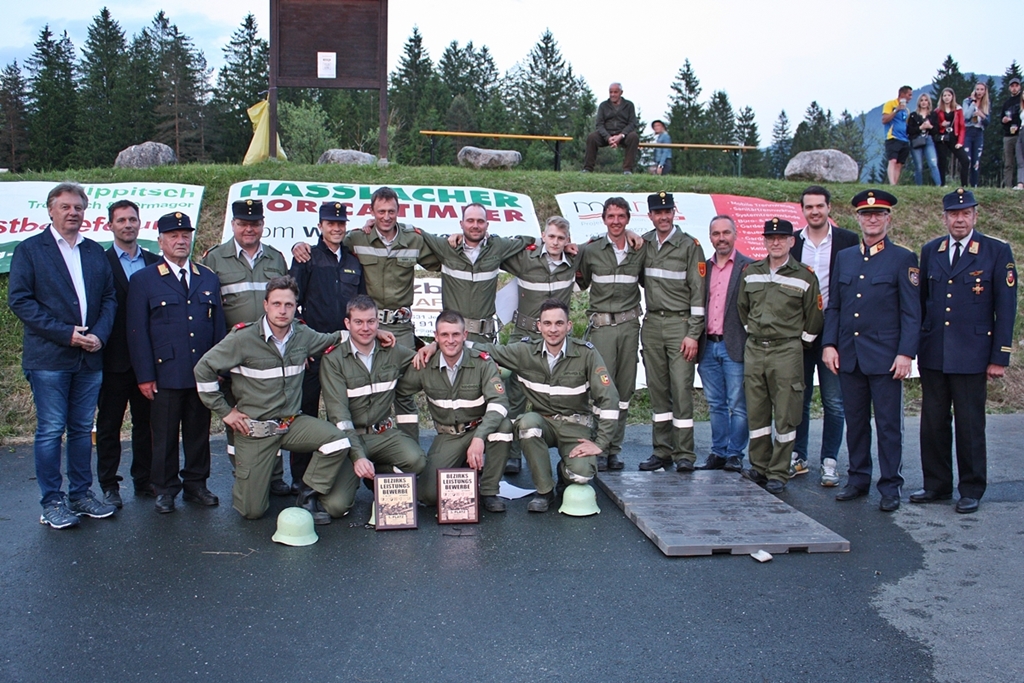 Bei der Siegerehrung, welche von der Trachtenkapelle Alpenrose Waidegg musikalisch umrahmt wurde, gratulierten unter anderen Landesfeuerwehrkommandant und Vizepräsident des ÖBFV Rudolf Robin, Landtagsabgeordneter Luca Burgstaller und Bürgermeister Leopold Astner zu den großartigen Leistungen der Feuerwehren des Bezirkes. Weitere Bürgermeister und Gemeinderäte sowie Vertreter der Behörden und der verschiedenen Blaulichtorganisationen aus dem Bezirk zeigten durch ihre Anwesenheit im Laufe des Tages ihren Respekt gegenüber den Freiwilligen Feuerwehren. Bezirksfeuerwehrkommandant Herbert Zimmermann gratulierte allen Bewerbsgruppen zu ihrer Teilnahme.