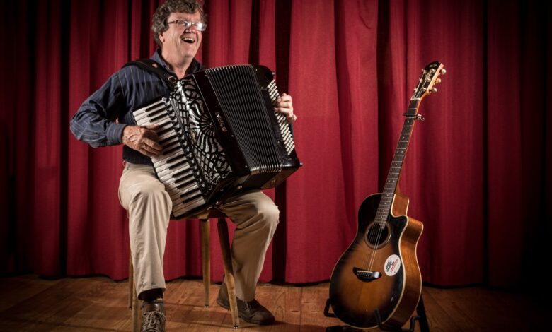 Seine Texte verstärkt er mit  Akkordeon und Gitarre, wobei er mitunter folgende Lieder zum Besten geben wird: