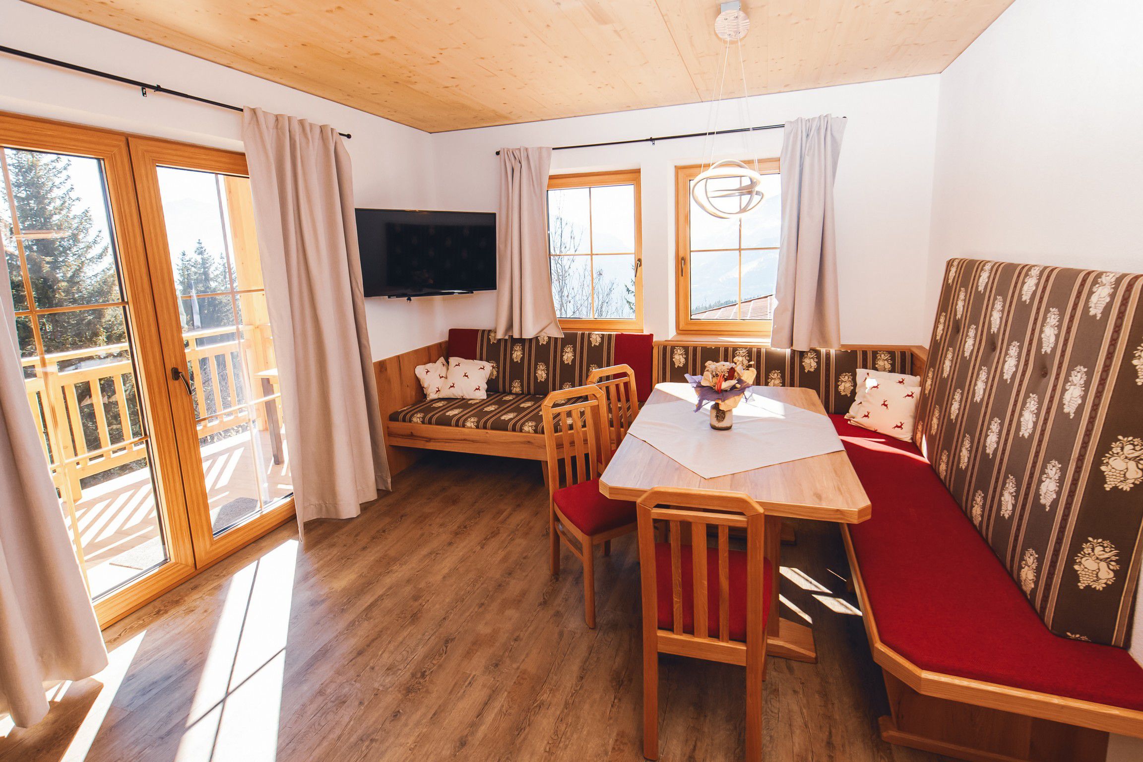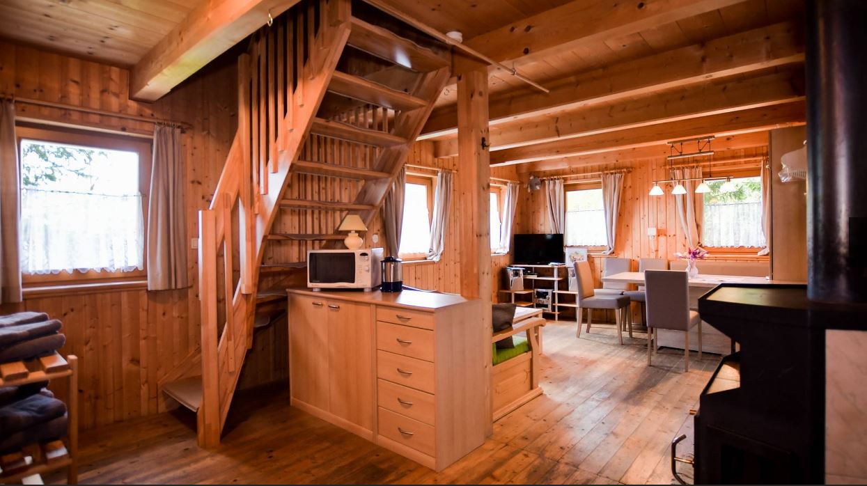 Die Almhütte, ein Ferienhaus, steht ungefähr 150 Meter vom Gasthof entfernt und ist der ideale Rückzugsort für Familien und Freunde. Mit einem geräumigen Wohnbereich inklusive Küchenzeile, Ess- und Wohnecke, einem gemütlichen Kaminofen für kühlere Tage, Garderobe, Dusche und WC bietet sie Ihnen den Komfort eines Zuhauses. Die Küche ist mit modernen Geräten wie E-Herd, Mikrowelle, Kaffeemaschine, Mixer sowie reichlich Geschirr und Küchenhelfern ausgestattet. Natürlich steht Ihnen auch WLAN zur Verfügung, damit Sie immer in Verbindung bleiben können.