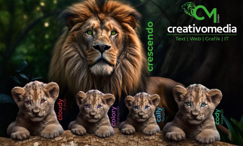 Der große Löwe – die creativomedia GmbH – verbindet uns miteinander und hält uns mit Ruhe und Gelassenheit sowie Beharrlichkeit zusammen.