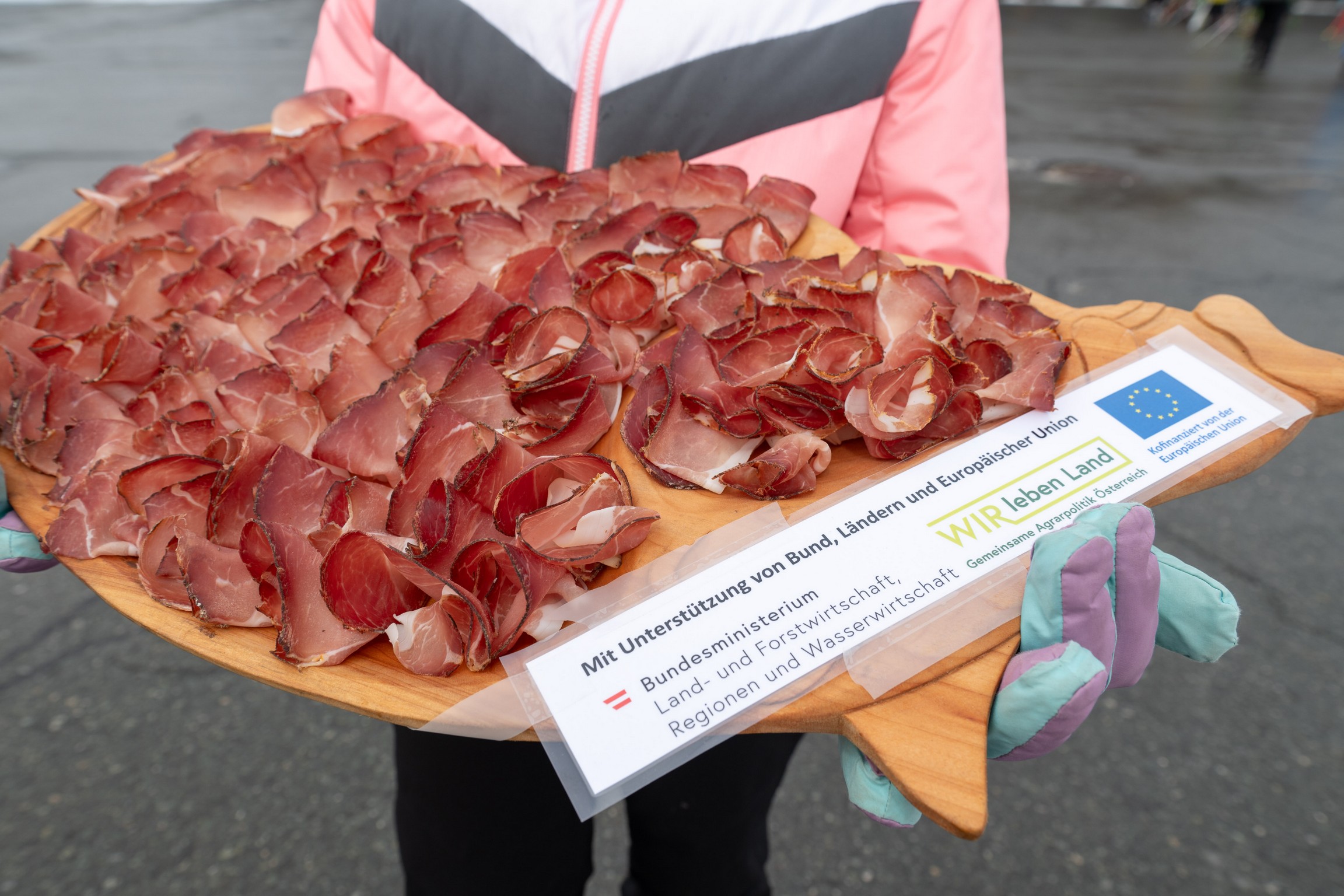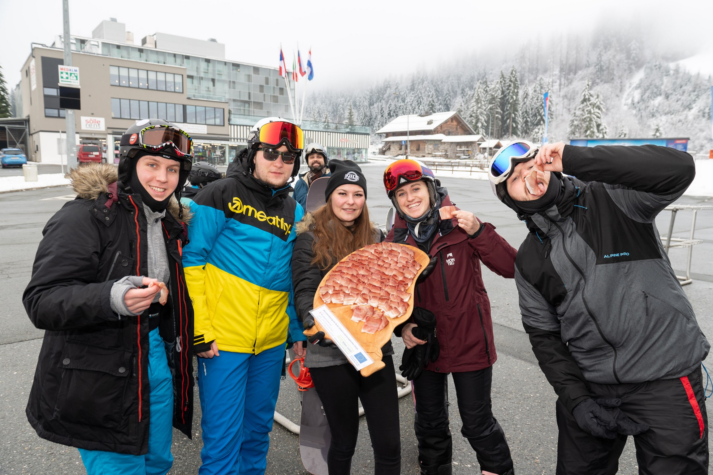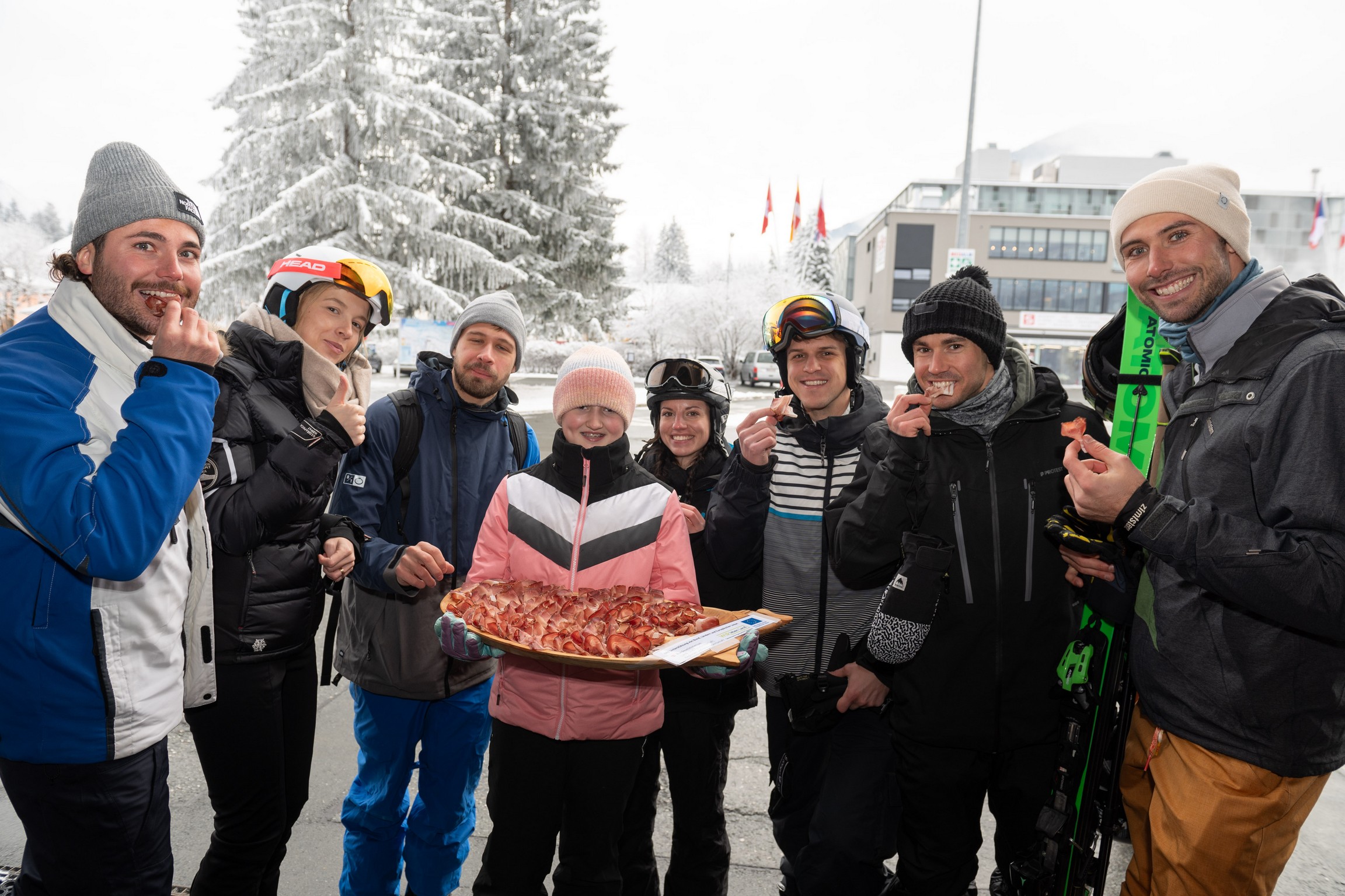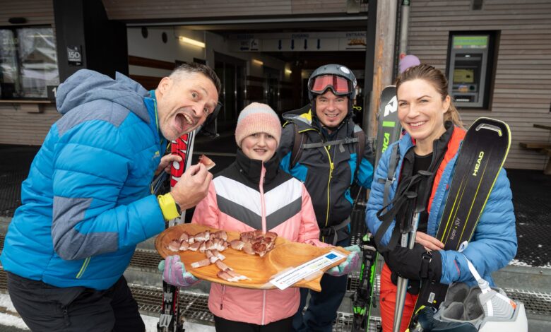 Am 8. und 15. Dezember 2023 kamen Wintersportbegeisterte an der Talstation des Millennium-Express in Tröpolach/Nassfeld in den Genuss einer Verkostung des Gailtaler Specks g.g.A..