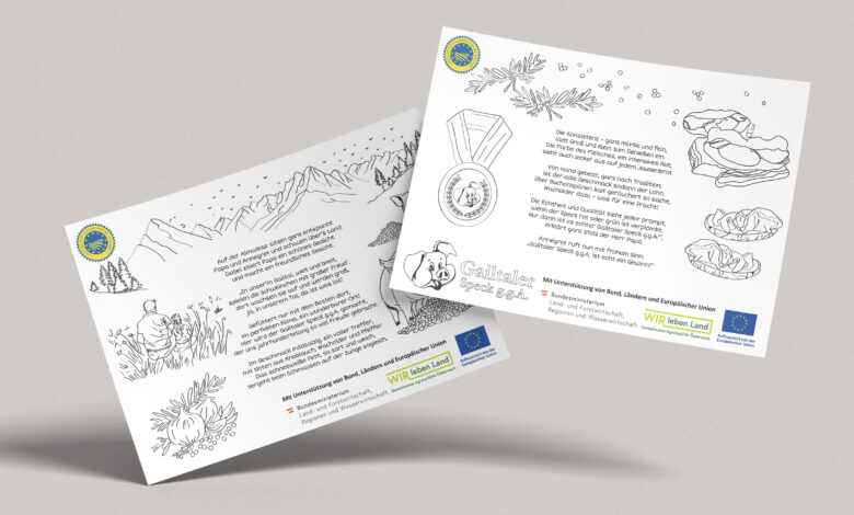 Der allseits beliebte und weit über die Grenzen des Gailtals hinaus bekannte Gailtaler Speck g.g.A. hat auch dieses Jahr wieder etwas ganz Besonderes für die Kleinen: ein Malblatt, das nur darauf wartet, bunt zu werden und dazu ein kleines Kindergedicht, das (vor)gelesen werden möchte.