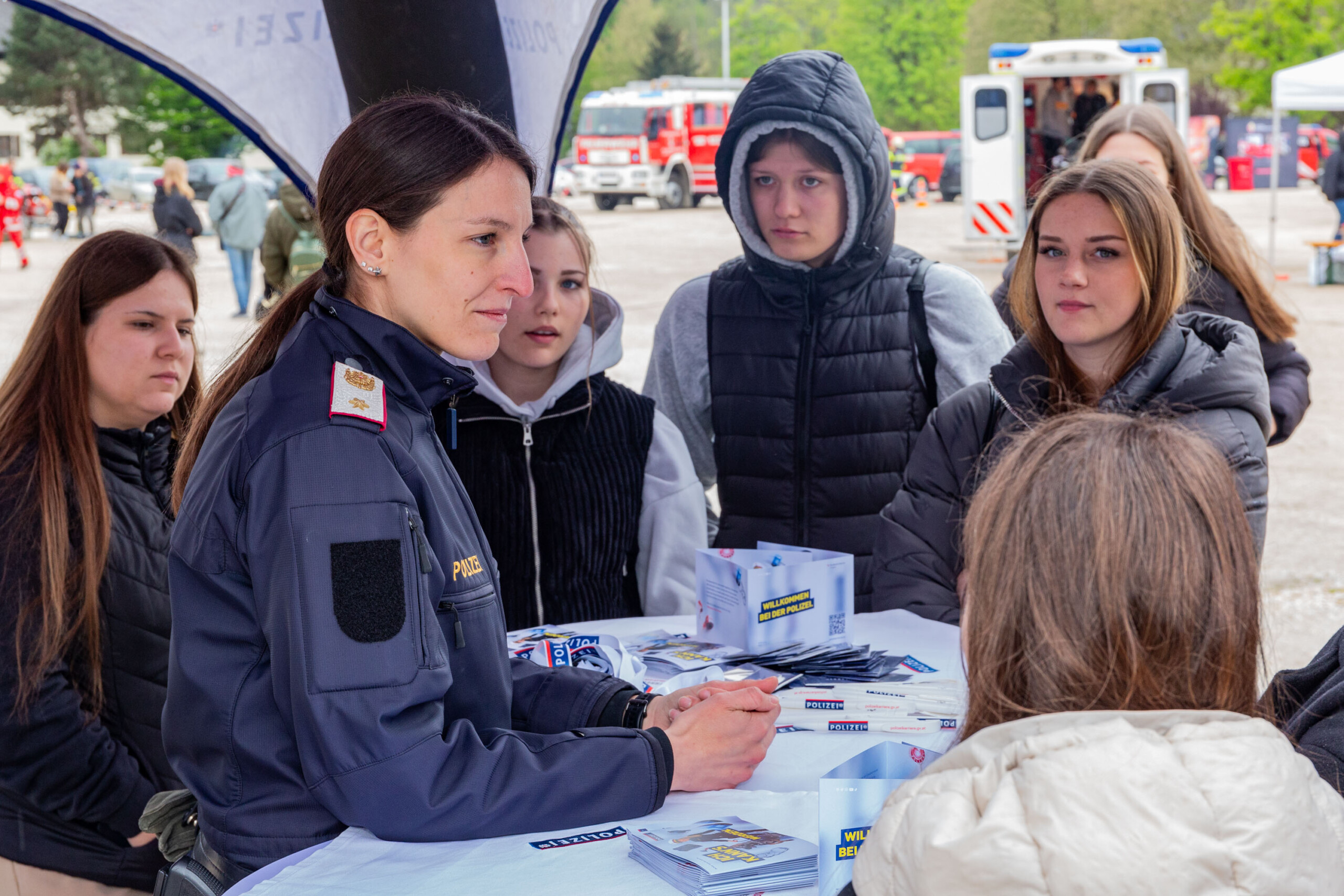 Obwohl das Wetter nicht ganz mitspielte, nutzten knapp 600 Mädchen die Gelegenheit, ver-schiedene Ausrüstungsgegenstände, Einsatzmittel und Fahrzeuge zu erkunden. Zusätzlich er-hielten sie wertvolle Informationen und Tipps zu Bewerbungsverfahren, Weiterbildungsoptio-nen und den Aufgabenbereichen einer Polizistin im Streifendienst.