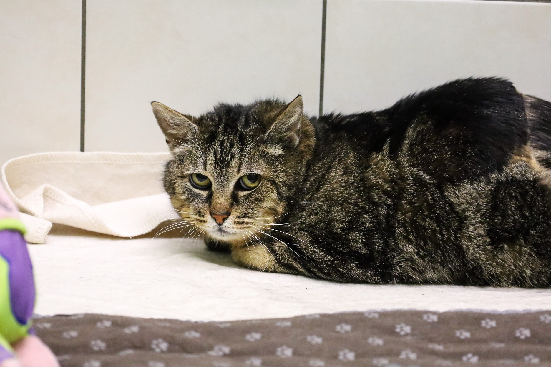 Der Autounfall, die Unfähigkeit mich zu bewegen und der lange unbehagliche Weg der Genesung – all das konnte ich bisher nicht verarbeiten. Deswegen bin ich fast keiner Katze mehr ähnlich, sondern mehr einer Schildkröte, die sich unter ihren Panzer verzieht. Ich habe schon lange nicht mehr vertraut, schon lange nicht mehr gespielt und bin schon lange nicht mehr herumgetollt. Ich liege nur da und verstecke mich unter jeder Decke und jedem Kissen.