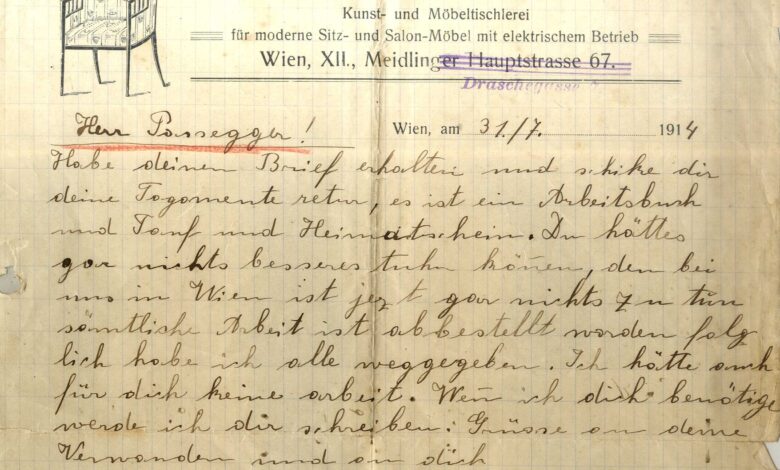 Der Brief datiert vom 31. Juli 1914 – drei Tage vorher hat Österreich-Ungarn Serbien den Krieg erklärt und der erste Weltkrieg begann.