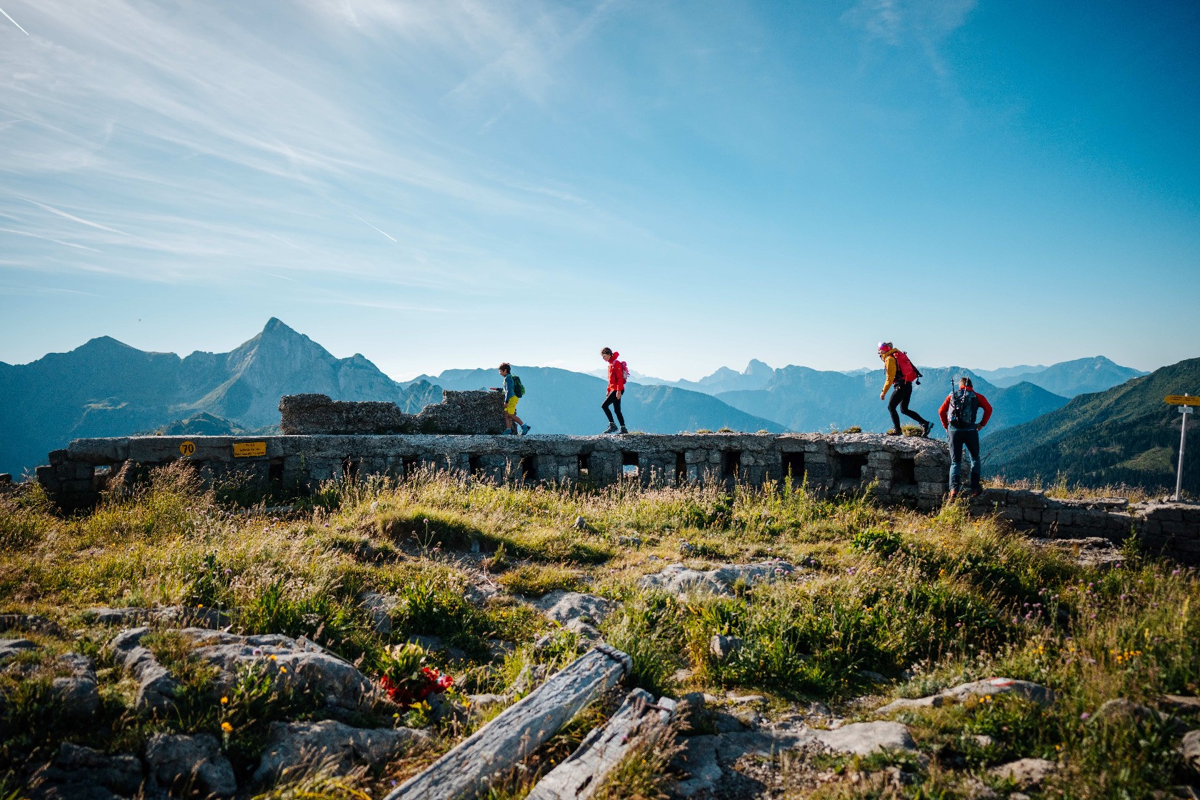 Eines der beeindruckendsten Elemente: der einzige Klettersteig Österreichs, der direkt durch das Berginnere des Cellon (2.238 m) führt – der Cellon-Stollen-Klettersteig. Der Steig folgt alten Kriegsstellungen und eröffnet dabei nicht nur einmalige Perspektiven, sondern auch ein tiefes Gefühl für die dramatische Vergangenheit dieser Region.